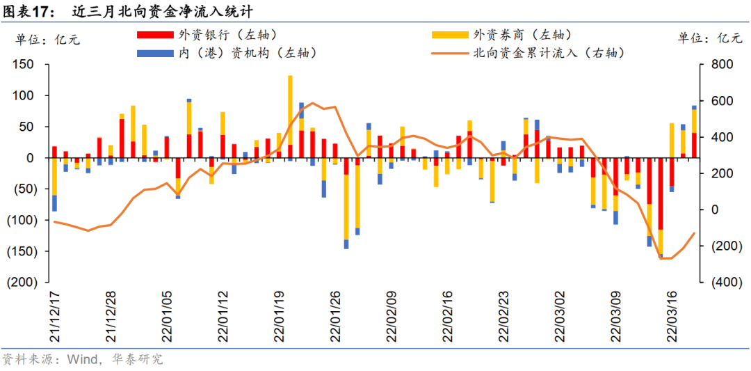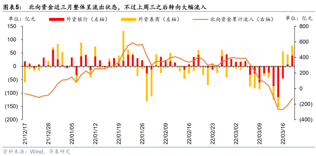 3. 最后,北向资金大幅流出现象也有一定缓解,上周三之后无论是配置型还是交易型北向资金都从流出转向流入,外资对A股的冲击也有缓和。
