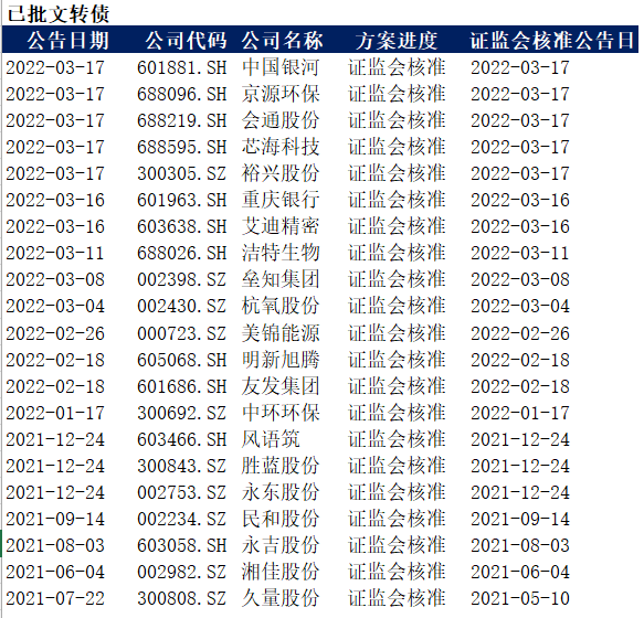 上周市场波动较大,周一周二市场急跌,周二经济数据超预期,同时MLF降息落空,权益市场担心后续宽信用延续性,债市同样关心后续宽货币力度,股债双杀,周三之后金融委会议释放积极信号,会议表示“积极出台对市场有利的政策,慎重出台收缩性政策”,市场情绪提振,权益及转债市场底部回升,而短期看股债赎回负反馈或改善,上周转债估值也有所提升,95-110元平价券估值处于17年以来93%分位数左右,近期市场成交活跃,基本维持周成交900亿元以上。我们认为目前市场或在低位向上区间震荡,不宜激进以稳为主,但仍可逐步关注调整较多标的相关机会,同时警惕核心标的赎回风险。标的建议关注银行如杭银、苏银、兴业等,煤炭运输如大秦。成长板块部分标的,例如隆22、晶科、闻泰、通22等弹性标的可关注后续机会。生猪养殖关注温氏等,数字经济关注创维等。周期主要关注上游交易机会。
