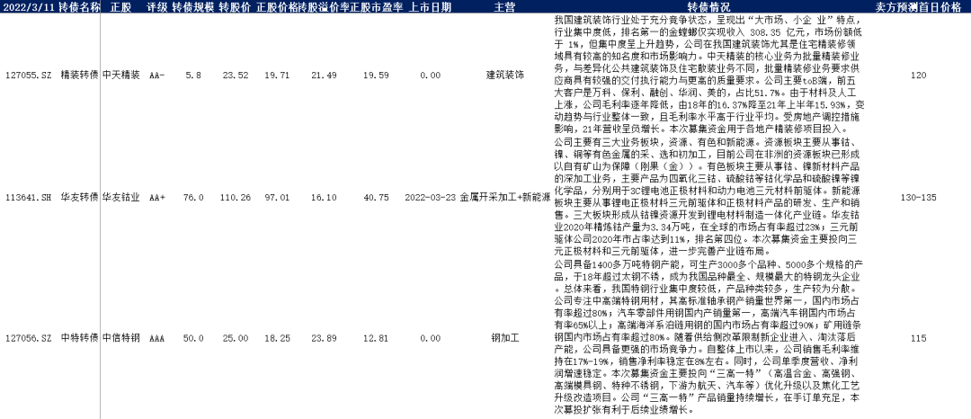 近期新券上市情绪较差,上市首日价格均未达到此前预期,可以关注低估品种机会。同时最近大量新券发行,但评级较低且规模较小,机构参与可能性较低。
