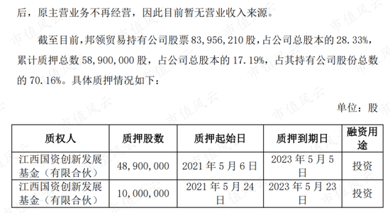 根据沐邦高科在11月收到的监管函显示,截至2021年三季度末,汕头邦领已经累计质押沐邦高科股份5890万股,占其持股总数70%。