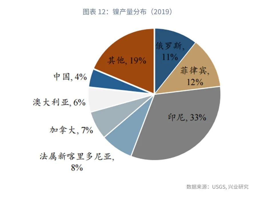 从有色金属来看,在俄罗斯产量占全球产量比重较高的有色金属品种中,钯矿和铂矿的运用较少,对PPI影响不大,但镍在不锈钢和电池领域有广泛的运用。