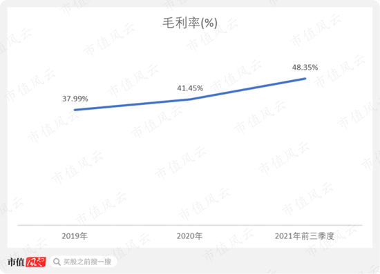 随着客户数量越来越多,规模效应逐渐显现,公司毛利率从2019年的37.99%,提升至2021年前三季度的48.35%。