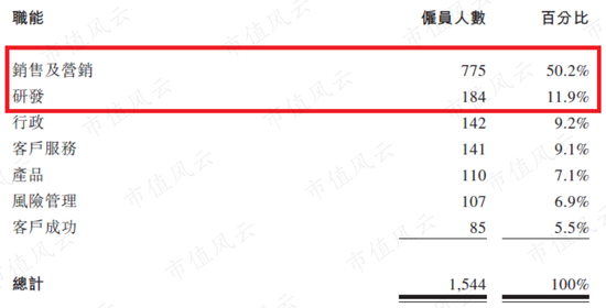 而研发人员占比仅为11.9%,远远不及销售人员。
