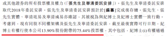 这样算下来,纪鹏程就以13.9%的股份,控制了75.44%的投票权,成为公司的实际控制人。