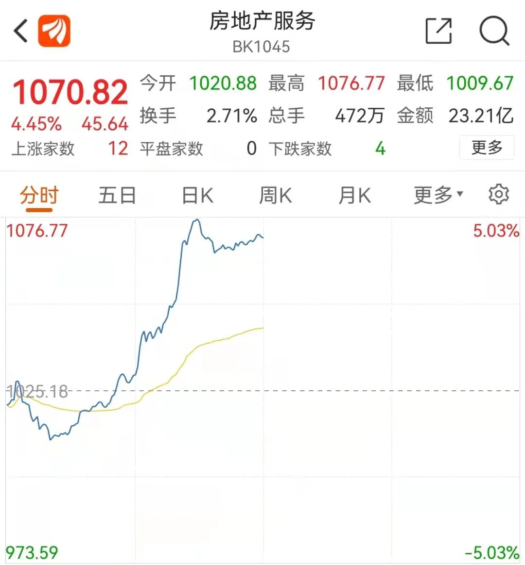 22日早盘,窄幅震荡的行情中,资金再度流向政策确定性板块—房地产板块。截至午间收盘,房地产服务由绿翻红,直线拉升上涨4.45%。