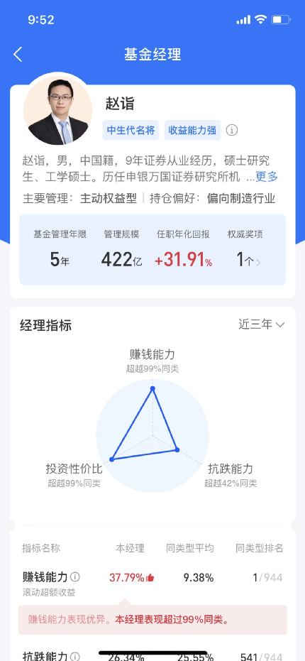 从赵诣管理的基金业绩来看,他任职期间年化回报达到31.91%。