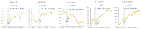 这根黄色线是美股标普500指数。相对资历浅的研究者会误认为战争冲击都是股市买入机会,这是第一层。