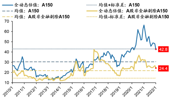 12,这是A150,就是2017年以来,剔除次新股涨势最好的150只龙头股,它的估值水平现在历史上是正一倍标准差。