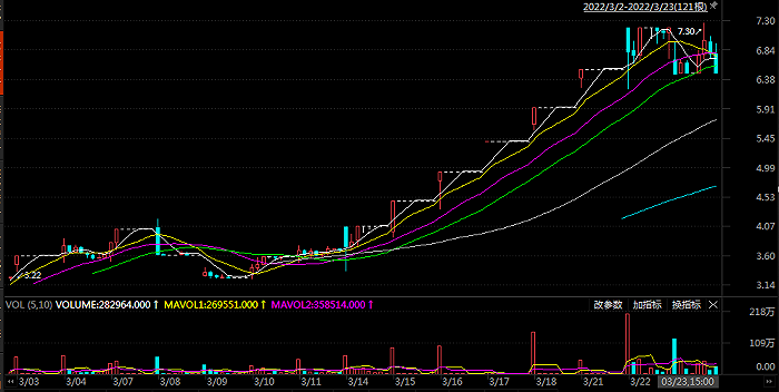 热点栏目 3月23日,宋都股份(600077.SH)以6.72元/股低位开盘,并最终跌停收盘,当日报跌9.97元%至6.5元/股,就此结束其七连板。进入2022年3月的17个交易日内,宋都股份共计收获12个涨停板、3个跌停板,期间股价涨幅超140%。