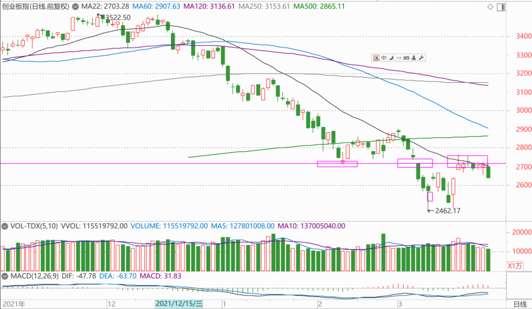 其实指数自去年12月见顶之后,我们反复在节目中提出一种拐点信号买入失败却可以“不亏损出局”的看图方法,本周的创业板指再一次出现这种情况。如下图: