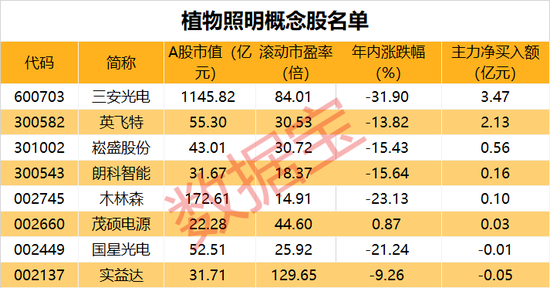 证券时报·数据宝统计,A股中布局植物照明的有8股。英飞特、崧盛股份等传统LED驱动电源厂商前瞻性布局植物照明LED驱动电源,受益于市场需求爆发,植物照明业务快速放量。