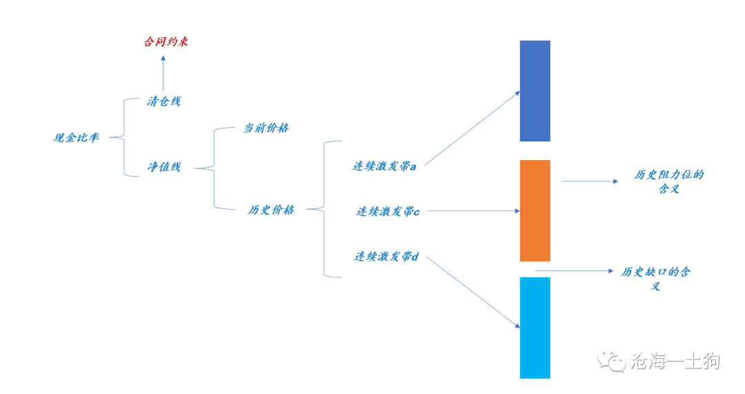 当现价击穿了这个区域,这些账户不得不提高现金比率,以避免触及清仓线。这时,多米诺骨牌效应会被激发,所以,这些区域被称为激发带。