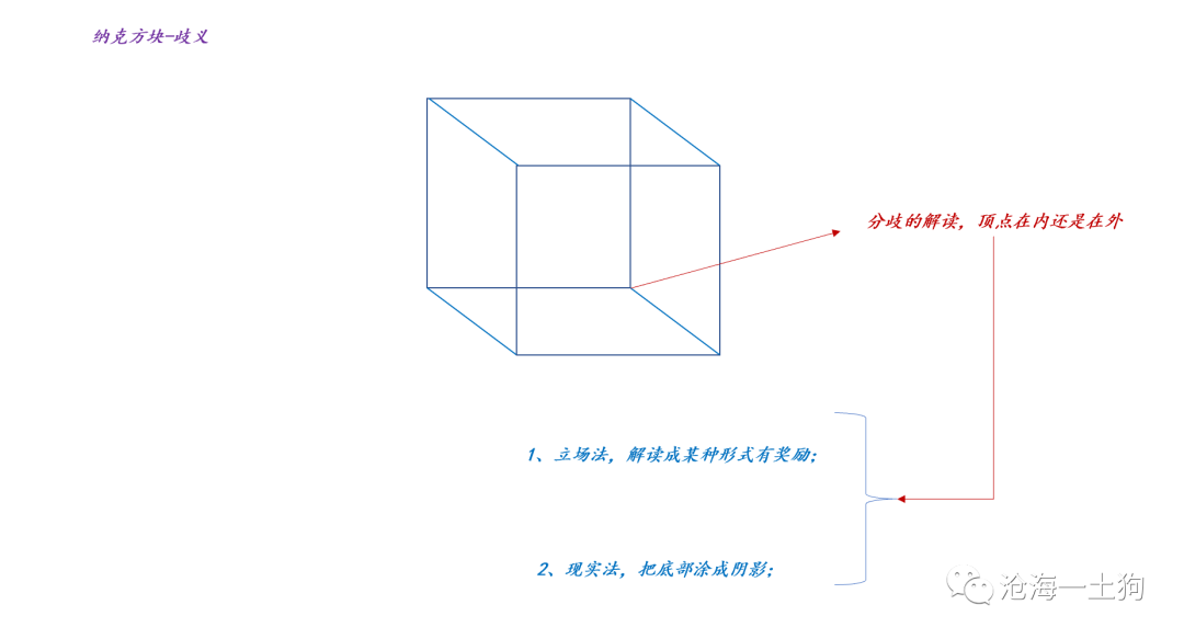 当我们盯着纳克方块时,我们的大脑会兴奋地对那个顶点做出分歧式的解读:一会儿解读为顶点在外面,一会儿解读为顶点在内部。