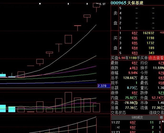周一,地产股表现强劲,截至收盘,板块涨幅达2.58%。粤宏远、天房发展、阳光城、中交地产等15只地产股集体涨停。其中,天保基建走势抢眼,连续9个交易日涨停。