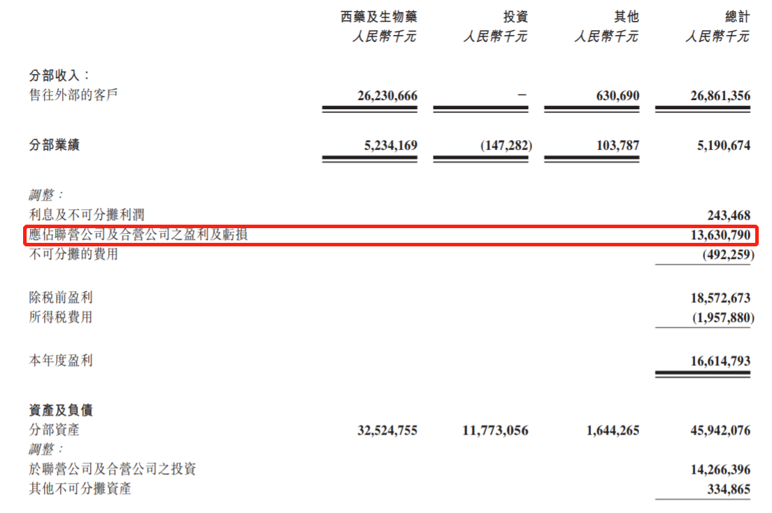 在2021年报中,中国生物制药提到,由于个别联营公司业绩亮丽,联营及合营公司年内为公司带来合计约136.3亿元的盈利贡献,扣除相关税项后实质盈利贡献约123.8亿元。按照这组数据,联营及合营公司盈利占总盈利的比例达到85%。