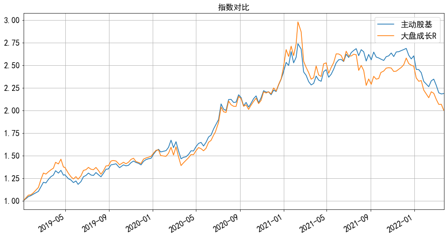 下图是主动股基指数和大盘成长R指数的叠加,感受下二者相似度:
