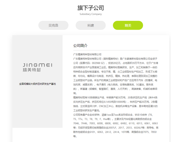 资料显示,出事的精美特种型材有限公司是A股上市公司豪美新材的全资子公司。投资20亿元,占地面积39万平方米,位于广东清远市高新技术产业园莲湖工业区。精美特材是集研发、生产、加工和销售于一体的特种铝合金型材制造基地,专注于高、精、尖工业铝型材生产和加工,形成了从熔铸、均匀化、模具设计与制造、热挤压、精抽、热处理、表面处理到深加工完整的工业铝型材产业链。