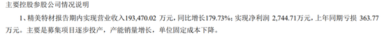 财报显示,精美特材报告期内实现营业收入193,470.02 万元,同比增长179.73%;实现净利润 2,744.71万元,上年同期亏损 363.77 万元。主要是募集项目逐步投产,产能销量增长,单位固定成本下降。