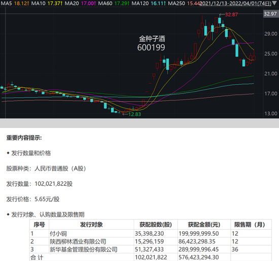 4月6日,金种子酒将有5132.74万股解禁,限售股股东为新华基金金种子1号资产管理计划和2号管理计划。该次非公开发行价格为5.65元/股,公司目前股价为24.50元,解禁收益率超过三倍。