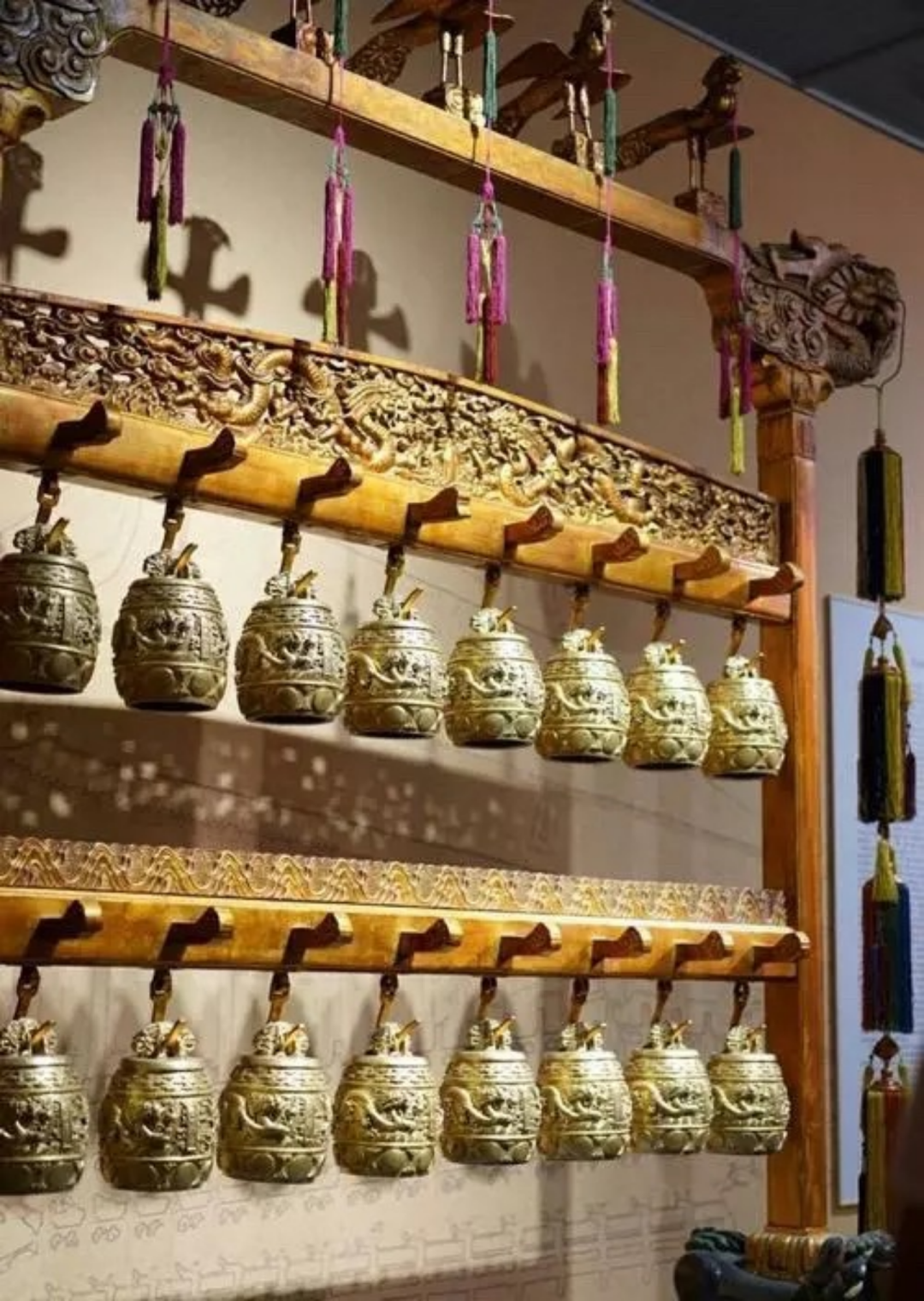 在故宫博物院里,保存着一组由13600多两黄金制成的金编钟,它为乾隆时期文物,民国时期被抵押给盐业银行。抗日战争爆发后,为免其落入日寇之手,盐业银行将金编钟从银行金库转运到了四行储蓄会地下室,埋于煤堆之下。就这样被默默守护八年后,金编钟于解放后被上交国家,收藏于故宫博物院。