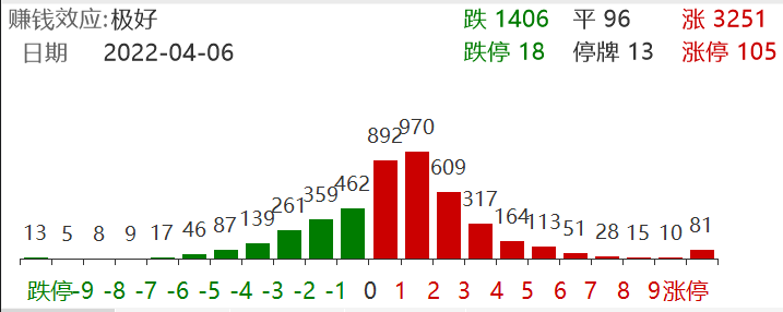 具体到个股上涨多跌少,3251家涨,1406家跌,小盘股涨的比较多,所以各大核心指数表现不咋地,沪深300跌-0.29%,创业板跌逾1%。
