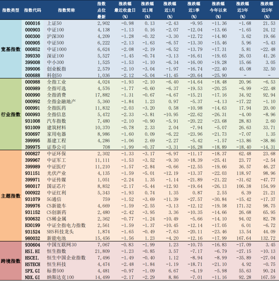 2022年4月7日A股主要指数估值表