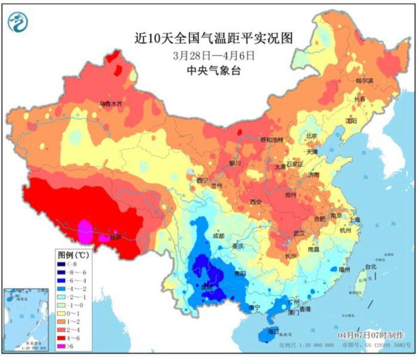 图表:4月5日-4月14日全国低温预测