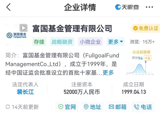 公开资料显示,富国基金成立于1999年4月13日,是基金行业“老十家”基金公司之一,最早由海通证券、申银万国证券、江苏证券、福建国际信托投资公司、山东省国际信托投资公司几大股东共同发起设立。
