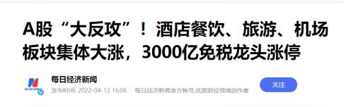 在一系列利好因素的刺激下,周二A股市场上的住宿餐饮、民用航空、旅游酒店、免税概念这些与旅游产业链相关的板块的涨幅明显占据了A股市场的主流地位。