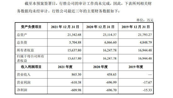 需要指出的是,或受疫情影响,行胜公司近年来业绩表现不甚理想,其未经审计的近三年财务数据显示,2019年至2021年连续三年均为亏损状态。