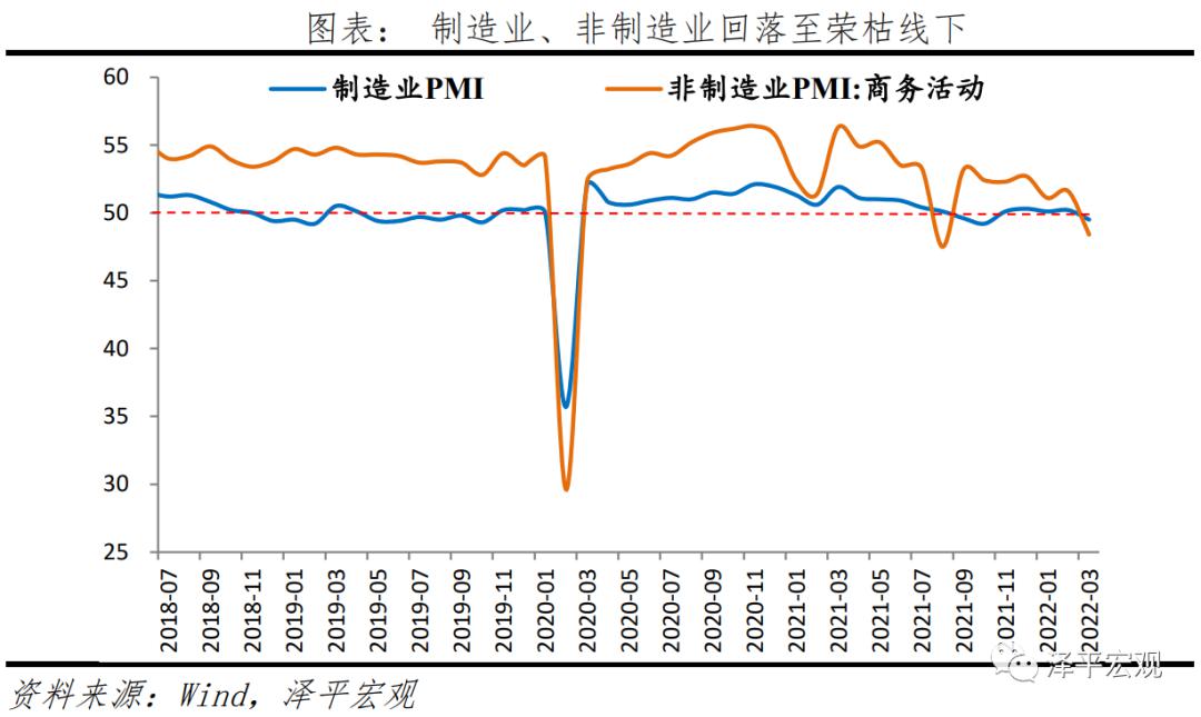 从经济基本面来看,国内面临疫情频发、房地产低迷、中小微企业经营困难、就业形势严峻,国外面临输入性通胀、美联储加息、中美利差倒挂等,经济下行压力加大。去年四季度GDP增速4%,处于潜在增长率以下,今年GDP增速目标5.5%,需要积极作为才能完成。3月国内疫情多地扩散,工业生产和服务业活动受到显著影响。3月制造业PMI为49.5%,较上月下滑0.7个百分点,生产、订单、就业及进出口均降至收缩区间。