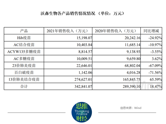 具体来看,沃森生物旗下的产品,除了13价肺炎结合疫苗以外,其余销售收入均出现不同程度的下滑。