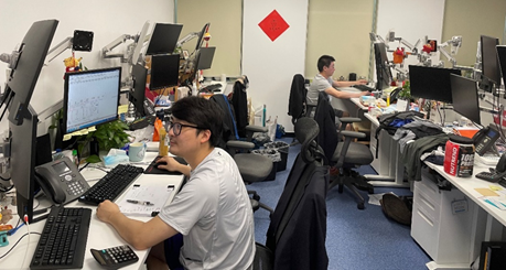 为保证公司交易业务的正常开展,始终为投资者做好专业化服务,陈力晨、乐达、马博宁三人开始了长达三周的办公室值守工作。这段时间中,他们根据每日实际运作情况,不断总结和细化现场与远程的联动,将必须现场操作的内容与能够远程支持的工作做剥离、组合与再分配,以保证在现场人员有限的情况下,各品种交易依旧能够高效有序地执行。