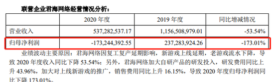 但业绩承诺期满后,君海网络的业绩却突然变脸。财报显示,2020年,君海网络归母净利润亏损1.73亿元,同比下降 173.01%,影响卧龙地产净利润-8623.1万元。