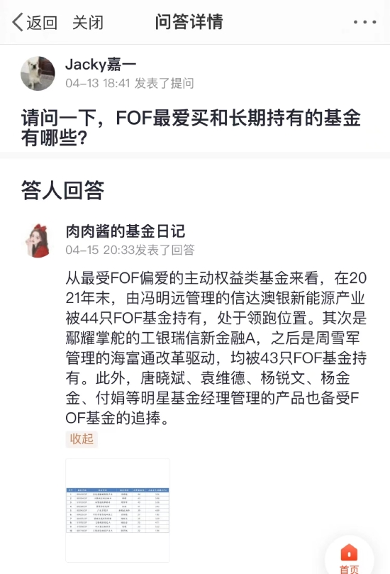 基友@Jacky嘉一发表了提问:请问下,FOF最爱买和长期持有的基金有哪些?