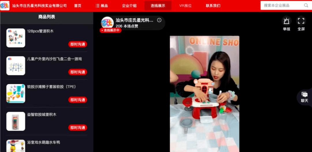 “Which one do you prefer?(注:你更喜欢哪一款?)”4月16日上午,广东省纺织品进出口股份有限公司的两位主播,在广交会的网页上直播推介一条条五颜六色的童装半裙。直播台前贴着一张纸,写上了两个邮箱地址。网页还设置有“发送名片”“聊天”“商品列表”等功能。