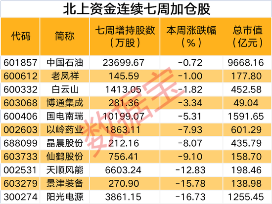 北上资金连续七周加仓股仅11只