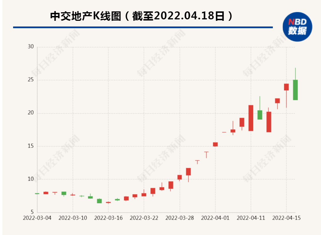 针对股价大涨,中交地产月内多次提示股价异动。4月18日,中交地产股份有限公司(简称“中交地产”)发布股票交易异常波动暨风险提示公告称,该公司股票在连续3个交易日内(2022年4月13日、4月14日、4月15日)收盘价格涨幅偏离值累计超过20%,根据深交所有关规定,属于股票交易异常波动的情况。