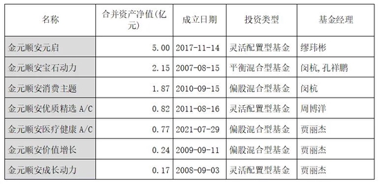 《投资时报》研究员还发现,金元顺安基金旗下权益类基金均为混合型产品,共有7只。单只基金中仅有金元顺安元启、金元顺安宝石动力规模超过2亿元,分别为5亿元、2.15亿元。其余5只基金规模皆不足2亿元,其中金元顺安价值增长、金元顺安成长动力规模分别为0.24亿元、0.17亿元。