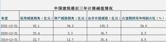 过往三年,仅涉及应收账款等在内的信用资产减值损失,中国建筑的累计计提金额约165亿元。