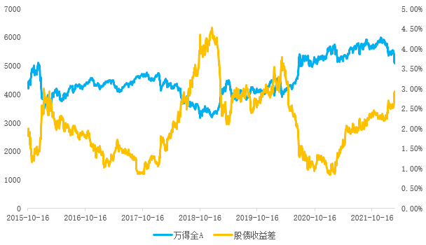 万得全A指数 pk 万得全A股债收益率差