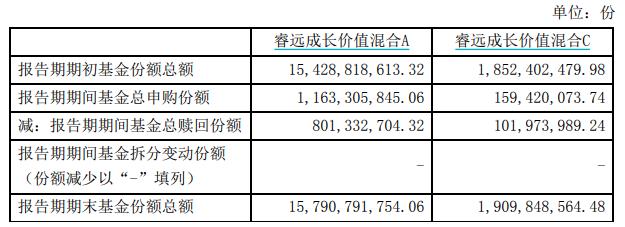 业绩表现方面,一季度末睿远成长价值混合A基金份额净值为1.5890元,报告期内,净值增长率为-25.00%,同期业绩比较基准收益率为-10.53%;该基金份额单季度申购赎回净额为3.62亿份。此外,末睿远成长价值混合C基金一季度末的份额净值为1.5699元,报告期内,净值增长率为-25.08%,同期业绩比较基准收益率为-10.53%;该基金份额单季度申购赎回净额为0.57亿份。一季度末基金总规模为280.9亿元,单季度缩水84.8亿元。