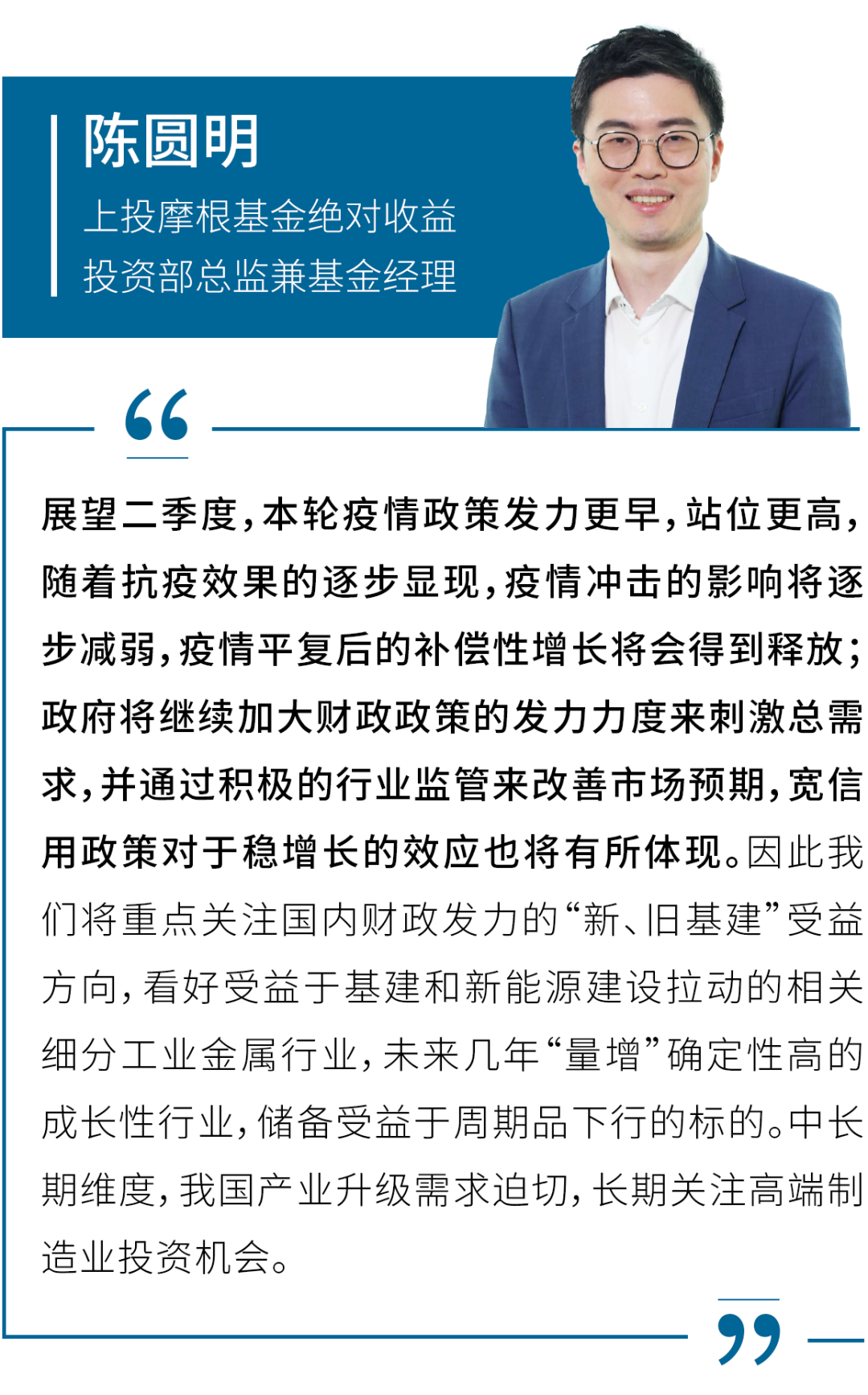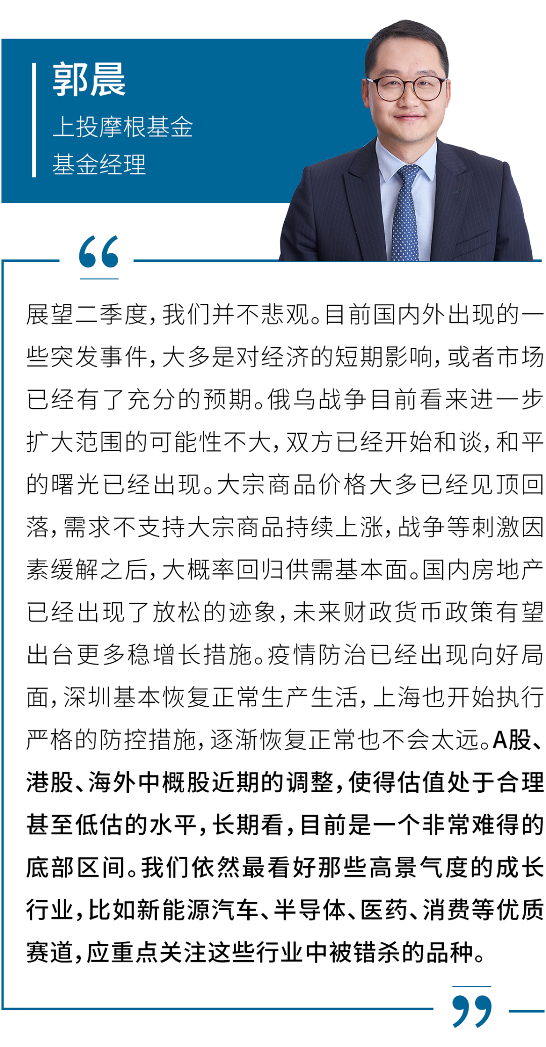 除了公司整体观点之外,我们还汇总了上投摩根多位明星基金经理对二季度A股市场的看法,帮助投资者更好地了解他们的投资逻辑和配置思路。