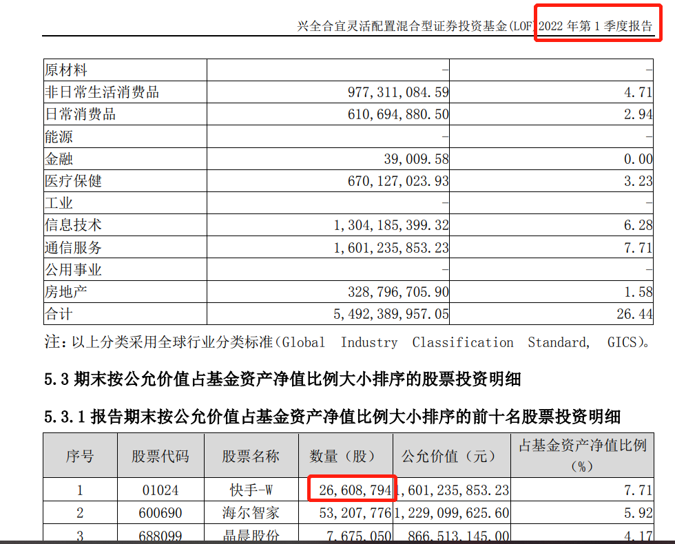 你别看快手一路下跌,兴全的谢治宇加仓快手,已经从去年年底的第二大重仓股,变成1季报的第一大重仓股了。