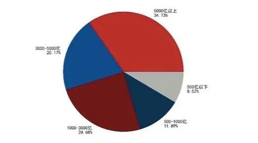 天相投顾数据显示,截止今年一季度末,剔除货币和理财债基的规模统计中,规模5000亿以上的基金公司有8家,规模占比34.73%;规模在3000-5000亿的公司同样有8家,规模占比20.17%,这16家头部基金公司占据54.90%的市场份额,剩下45.10%的市场份额由132家基金公司共同占有,其中22家规模在1000-3000亿的基金公司占比24.68%;26家规模在500-1000亿的基金公司占比11.89%;以及84家规模在500亿以下的基金公司占比8.52%。
