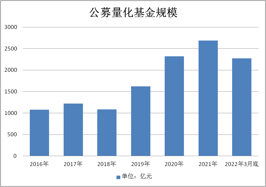量化投资始于美国,至今已超过50年。国内第一只公募量化产品成立于2004年,行至2022年,至今已走过18个年头,而Wind数据显示,国内公募量化基金最新规模2273亿元,仅占公募基金总规模的1%。