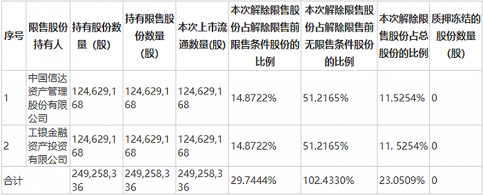 浙江建投4月25日有2.49亿股定增限售股解禁,占总股本比例23.05%,与解禁前流通盘基本相当,解禁市值约51.80亿元。本次解除限售的股东为中国信达资产管理股份有限公司、工银金融资产投资有限公司,为公司第二、第三大股东。两家投资机构投资一年账面浮盈超150%,约合市值超30亿元。