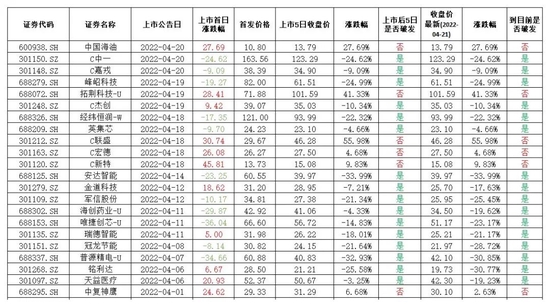 近期由于国际地缘冲突带动了能源价格的上涨,油气板块景区度较高,但就是这样一个热门板块题材,且是中国油企三巨头中的“巨无霸”中国海油(600938.SH)也没能留住悲观的投资者。4月18日,中国海油公布了新股的发行结果。公告显示这次网上发行中签率为0.427%,是2022年以来网上中签率最高的新股。而在此次认购中,网上投资者放弃认购金额2.42亿元;另外还有7位线下投资者放弃了新股认购,弃购金额59.62万元。不过,好在中国海油本次A股发行将启用“绿鞋”机制,即超额配售选择权,这一机制有利于稳定新股上市后的表现。中海油在上市当天虽然盘中打开涨停收盘涨幅收窄,但在第二天的22日开盘不到半小时就强势涨停,最高时封单近20亿。
