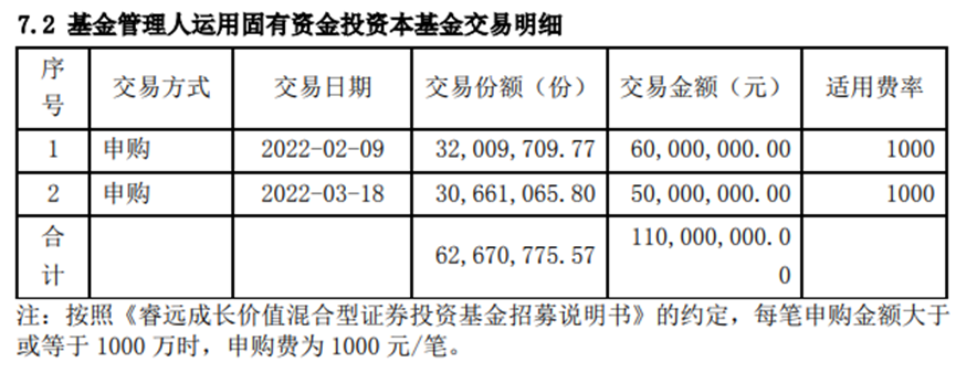 和易方达基金类似,睿远基金年内也是2度公告自购。