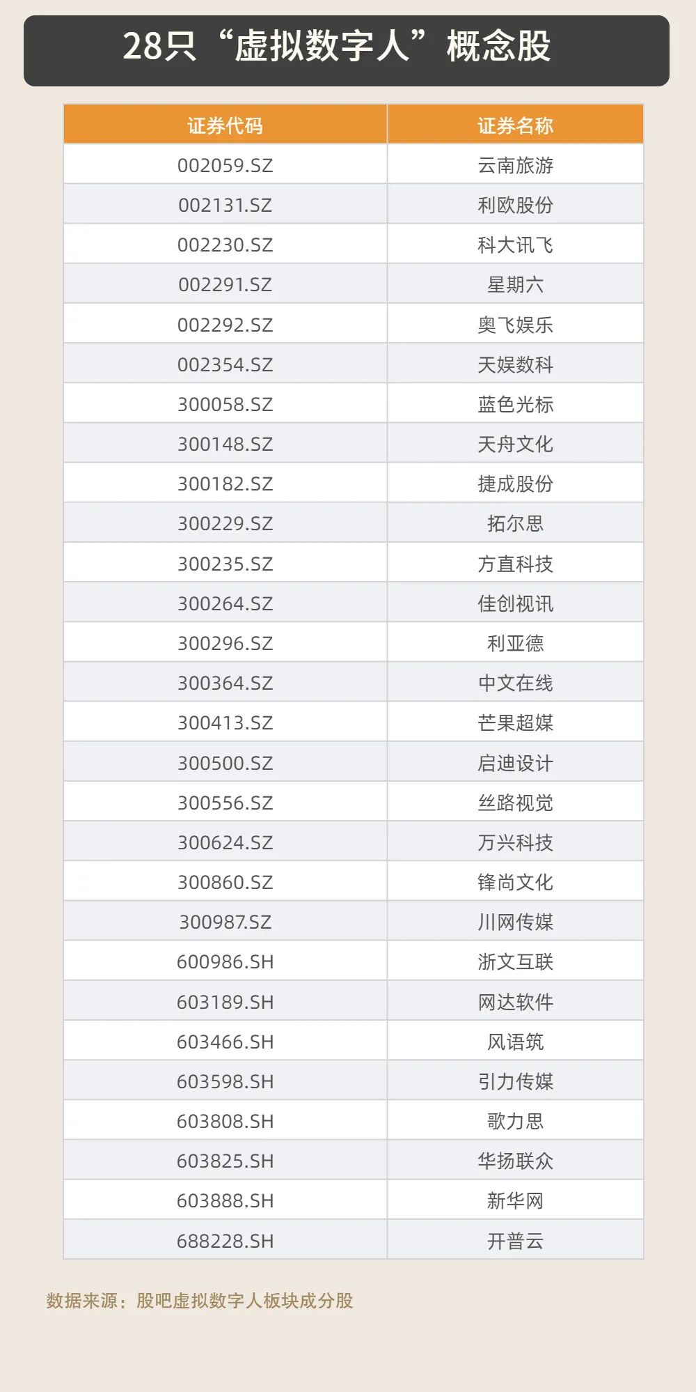25只“虚拟数字人”概念股
